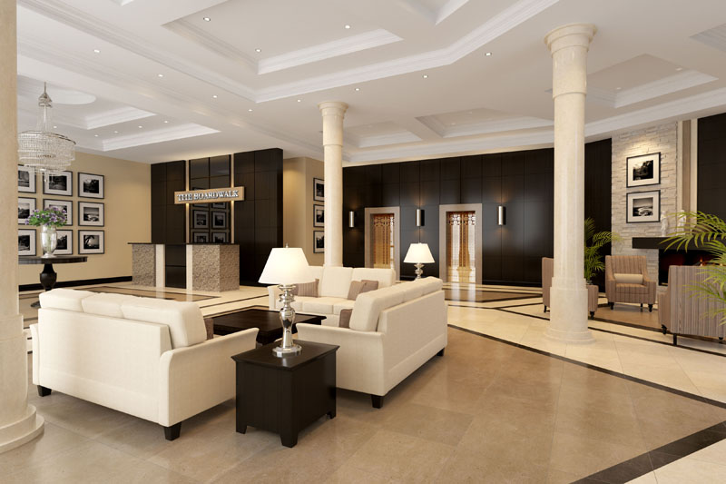 The Boardwalk exterior is inspired by clean modern lines of architecture, complimenting the historically restored buildings nearby. Charm, character and elegance are evident in every detail. From lush landscaping, through the serene lobby to the beautiful entry of your new suite, each step provides a showcase stimulating your senses with beauty and elegance.