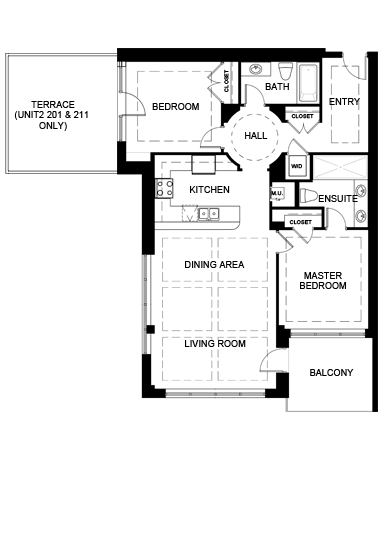 The Essex is a 2 bedroom beautifully detailed unit with open concept living area and wonderful balconies on 2 sides.