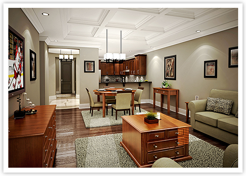 The Boardwalk exterior is inspired by clean modern lines of architecture, complimenting the historically restored buildings nearby. Charm, character and elegance are evident in every detail. From lush landscaping, through the serene lobby to the beautiful entry of your new suite, each step provides a showcase stimulating your senses with beauty and elegance.
